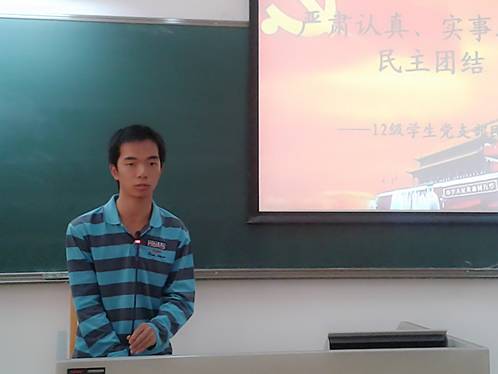 12级学生党支部组织委员杨登凯发言