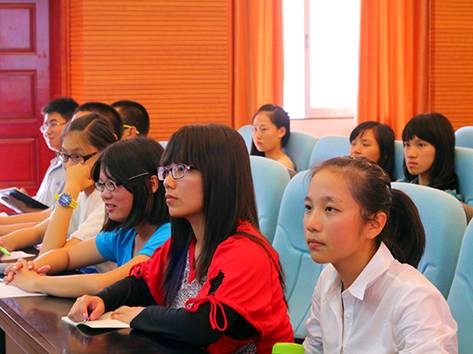 大一新生们聚精会神地听着讲座
