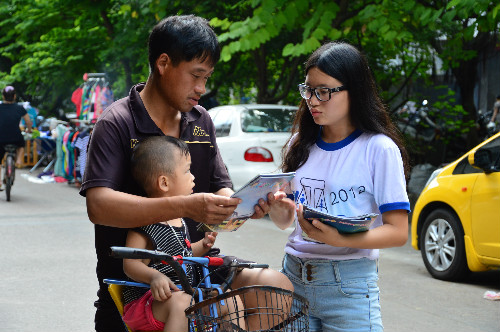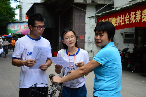 “萤火虫”一户一户走访商家,豪不松懈紧盯每一个路人,把握每一次机会。对于老花或者不识字的中老年人,我们念着帮助对象完成问卷。尽管拒绝多于微笑,顶着炎炎烈日,汗流浃背的我们口干舌燥,但是“萤火虫”从不放弃,一直向着前方飞翔。