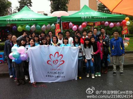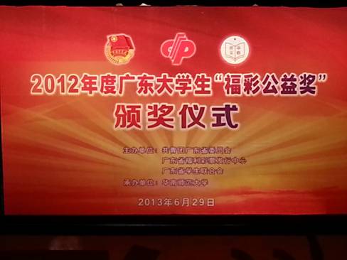 本次大会表彰了300个福彩公益优秀团队、100名福彩公益之星、10名福彩公益优秀指导老师和10个福彩公益优秀组织奖,并给获奖团队共200万元公益资助。法学院Care志协和Care凝光三下乡一同获得了2012年度广东大学生福彩公益奖的优秀组织奖。