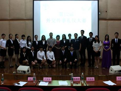 本网讯(文字:梁倩文 摄影:刘滢 周婉怡 编辑:吴惠敏) 2013年6月20日下午2点半,第12届外交外事礼仪大赛广外决赛在图书馆学术报告厅举行。王树春副院长、党委副书记卢海清、惠耕田老师、孙章季老师、郑腊香老师、刘青老师作为评委出席了本次大赛。