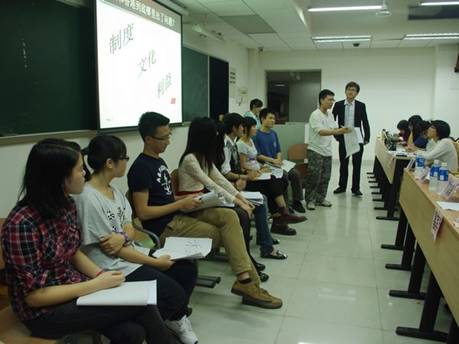 本网讯(文字:王灏 摄影:刘滢 编辑:吴惠敏) 2013年4月19日晚,法学院时事一席谈活动在教学楼G208举行。新闻与传播学院教授赵建国与朱颖,法学院副教授陈寒溪、黎家勇出席了本次学术性论坛,他们与选手们漫言畅谈,共同讨论身边热点。国政外交专业的研究生代表,法学院及其他兄弟学院学子也踊跃参与本次活动。