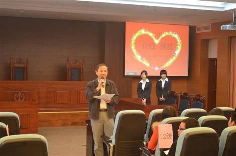 2012年12月20日周四下午,以“自强•感恩”为主题的法学院受助学生交流会在南校区第一模拟法庭正式召开。