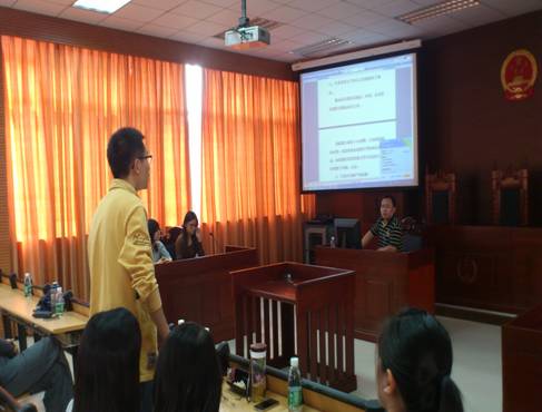 接着是特邀嘉宾——本校在读研究生陈茂义、王晓君分享他们在处理法律事务中的经验。陈茂义主要谈及证据的收集问题。他以婚姻案件为例,指出:接到案件时,首先要了解、熟悉案件,通过谈话等方式了解当事人婚姻缔结过程、破裂原因、财产和子女抚养等情况;然后要告知当时人必须收集的材料,注意证据的“真实性”、“关联性”和“合法性”;最后要根据证据分析案情,查找法律依据。此外,他还谈到,在劳动纠纷中,最困难的是用证据证明劳动关系。他建议在没有劳动合同时,要收集工资条、登记表、同事证言等证据。当被问及“飞信”内容能否作为证明劳动关系的证据时,他回答,只要内容充实真实,能证明劳动关系,法官一般会予以支持。