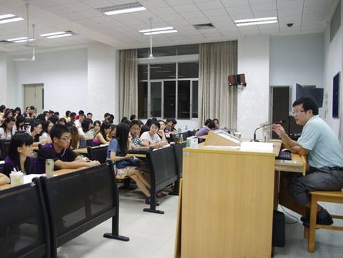 接下来叶昌富指出毕业论文提纲拟定的重要性,它为整篇论文写作奠定基础。另外,他从论文的写作过程和格式方面给予指导。他要求同学们要写好序论、本论和结论,做到形、神不散。序论可以通过交代式、提问式、出示观点式、提出范围式或阐述概念式来写作,至于本论则需要论证充分才能具有很强的说服力,最后要用一个好的结论来总结观点。