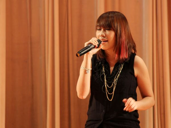 在选手完成赛事比拼之后,上届法学院“秋之声”冠军伍嘉盈为在场嘉宾献唱《爱你》,有力动情的歌声将现场气氛推向高潮。