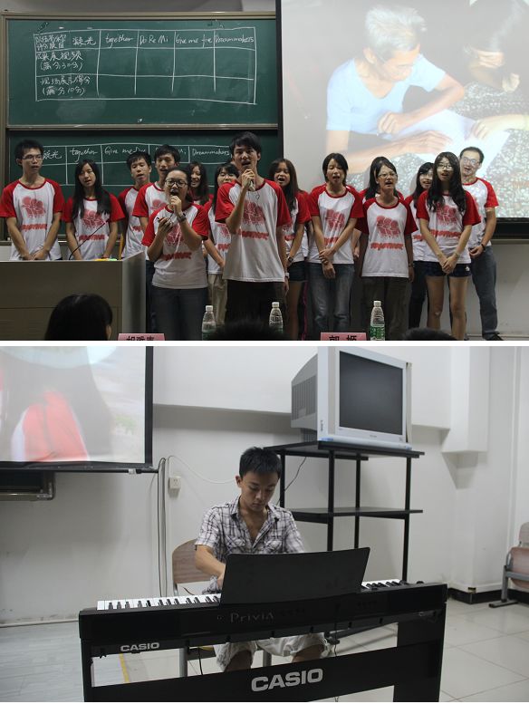 三下乡各队伍在成果展示中通过分享义教、义诊、慰问老人的点点滴滴来显示大学生回馈社会的真诚服务精神。Dreammakers队为小朋友们开展主题班会,让他们更懂得如何与人沟通;Do Re Mi队教小朋友们轻快的儿歌,小朋友们在欢快的歌声中绽开笑脸;Together队探访老人院,为当地老人送去温暖;在Give Me Five队的趣味运动会中,小朋友们团结合作,显得积极活泼;凝光队为当地老人义务量血压、按摩、拔火罐,义诊服务无微不至。