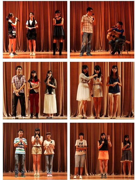 主席团率先登场,一出场便营造了一股神秘的氛围,伴着打亮的灯光,主席团的五位成员出现在大家眼前,引发了一阵掌声。紧随其后,各个部门轮番登台,小品,唱歌,弹琴,每个部门都以丰富的表演形式发出真诚的邀请,每位部长都以诚恳的语言介绍自己以及部门,诸如“We Want You”“请你加入我们”此类的诚挚呼吁也是不绝于耳。