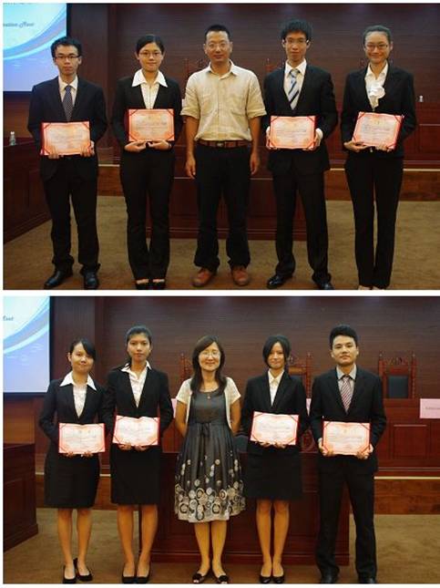 最终,经过三位仲裁员的商议,最佳辩手由原告辩护律师团的苏静获得,一等奖为被告辩护律师团,二等奖为原告辩护律师团。