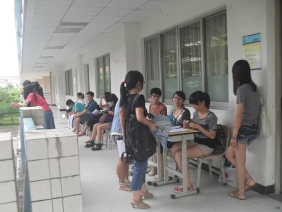 而门外等待面试的同学也在耐心地等待着,有的同学还表示,希望能得到这次三下乡的机会,不管那里的条件是否优越,只要能让自己的特长得到发挥就很开心了。