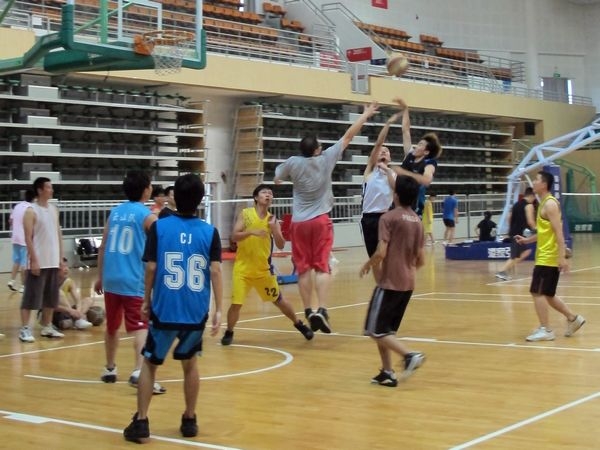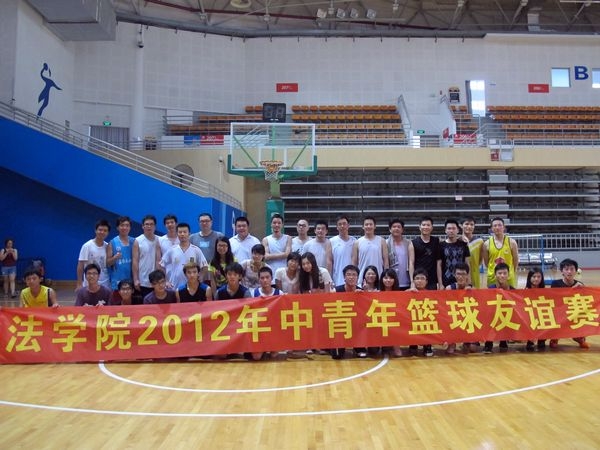 本网讯(文字:曾梦颖 摄影:任逸 编辑:容燕清) 5月13日下午,法学院2012年中青年篮球友谊赛在华南师范大学(大学城校区)体育馆举行。本场篮球赛由我院组成的团学队对战98-03届校友组成的校友队,旨在通过体育运动促进在校学生与毕业校友之间的交流。经过一个多小时精彩比拼后,两队以73:73的平局结束本场友谊赛。