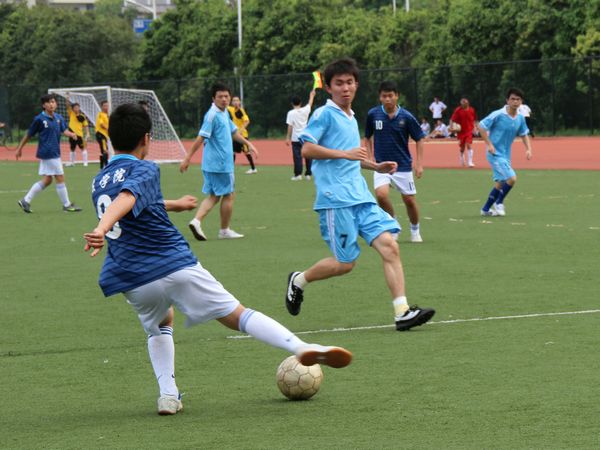 本网讯(文字:张泽宇 摄影:曾颖琛 编辑:容燕清)5月10日下午,2012年广外杯足球赛展开第三轮角逐,我院足球队迎战英教学院足球队。经过全场五十分钟的激烈对抗,法学院足球队最终以6比0大胜对手。
