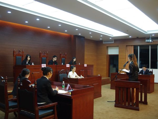 本网讯(文字:罗炜茵 摄影:高晓莹 编辑:吴静煌) 经过书面诉状起草、口头辩论和老师面试环节,以及复赛的对抗赛,广外2012年杰赛普选拔赛的四位决赛选手于5月2日晚齐聚广外大南校第一模拟法庭展开对决。本次决赛选用了Aprophe和Rantania两国关于合法政府和正确行使管辖权的纷争作为比赛案例。何沐凝、赵蔚为原告Aprophe的辩护律师,蔡晓咏和郑永吉为被告Rantania的辩护律师。姚植洪、曾秋萌、刘杨担任法官;黄丽萍副院长、梁晨老师、修文辉老师、惠耕田老师担任了本次决赛的评委。