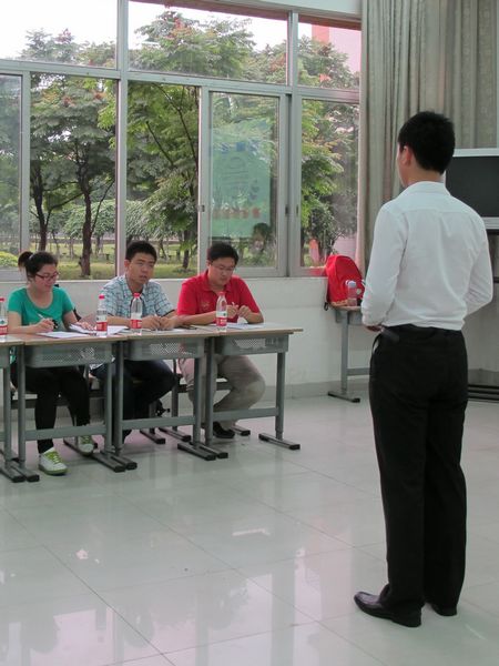 本网讯(文字:郭韵莹 摄影:任逸 编辑:吴静煌) 4月13日,第十一届全国大学生外交外事礼仪大赛广外选拔赛初赛在教学楼G108拉开帷幕。本次选拔赛的评委是第十届全国大学生外交外事礼仪大赛广外代表队的4名队员张之炎、高可闻、张玉榕和曹慧慧。