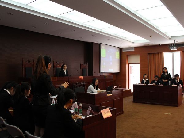 本网讯(文字:彭荟颖 摄影:曾颖琛 编辑:容燕清) 3月27日下午,“胜伦律师杯”广东省第七届高校法学辩论联赛广外对战华农在南校第一模拟法庭拉开了帷幕。通过主办方随机产生的五名评委,来自华南师范大学的林浩楠、吴佩琳,广东工业大学的何文辉,广州大学的杨帼英,广东金融学院的谢斯节出席了本场比赛。