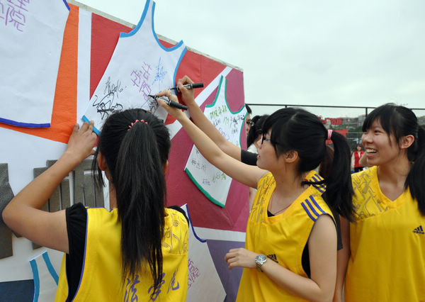 本网讯(文字:唐润云 摄影:黄安琪 编辑:容燕清) 一年一度的“广外杯”篮球赛于3月22日下午拉开帷幕。开幕式上法学院男、女子篮球队的队员们分别在题板上留下自己的名字,法学院“Title”舞队以靓丽的舞蹈点燃大家的激情,随即,2012年“广外杯”篮球赛正式开始。