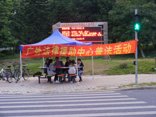 本网讯(文字:欧福阳 摄影:吴海 编辑:吴静煌) 2011年12月4日是第十一个全国法制宣传日,也是实施是“六五”普法规划的第一年。12月4日当天广外法律援助中心(下简称“法援”)在广外大学城校区邻近的贝岗村内举行了一次普法活动。