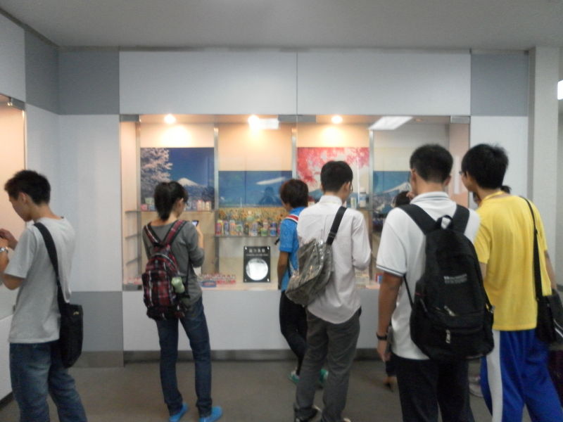 参观生产通道结束后,同学们又参观了企业展览窗内的其他有关益力多的相关展示并纷纷拿出照相机记录。
