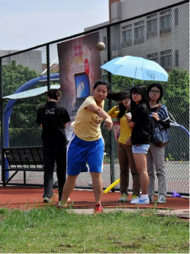 女子铅球比赛的精彩度绝不逊色于男子铅球比赛,虽然她们不及男生健壮有力,但他们也有属于自己的别样风采,当陈文婕站在场上时,你绝不能想象身形纤瘦的她能投出6米27的成绩,铅球着地时,每位观众惊讶不已。来自10国政的叶红,瘦瘦的,小小的,就是这样一个女子,技压群英,微笑归去。表现不俗的10国政的叶红斩获第一名,11法五的陈文婕勇夺第二名,11法六的李琪获第三名,她们的成绩分别是6米43,6米27和5米81。