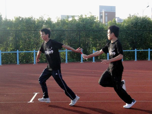 下午4:40,激动人心的压轴赛——男女子4×100米接力赛在万众期待中正式开始。100米,是速度的较量;接力赛,是团结与默契的比拼。领先的人不敢松懈,生怕后面的人追上,落后的人不愿认输,在赤色的环形赛道上奋起直追,努力缩小差距。