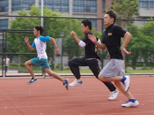 上午10:00,一片欢呼声拉开了本次院运会的第一场比赛男女子100米赛跑。本项比赛分预赛和决赛两个部分。紧张的比赛气氛在裁判员的一声发令枪响后爆发到极致,运动员们像离弦的箭一般向前冲去,赛道两旁顿时呐喊声一片,观众们都不遗余力地为自己班的同学加油助威。最后,08法五李亚兵等8名同学进入男子组100米决赛,10法四陈雪荧等8名同学进入女子组决赛。