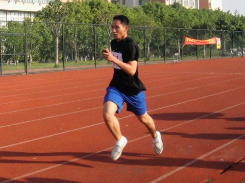男子组的比赛在下午进行。跑道上,运动员们如离弦的箭般向前飞奔,奋勇争先。跑道边,拉拉队激情澎湃,呐喊鼓劲。跑完近三分之一的路程后,11法三的刘泽龙暂时领先,11法四的袁伟驰、11法五的钟旭杰紧随其后,比赛非常激烈。最后冲刺的时刻,钟旭杰飞速超越一直领先的刘泽龙,首先冲过终点线,问鼎冠军,11法三的刘泽龙和10法三的王增光分别为亚军、季军。值得一提的是,09级的车伟辉、张志彬、庞伟明手拉手微笑着冲过终点的一幕,在运动场上定格为一道亮丽的风景线,让大家深深体会到“重在参与”的体育精神。