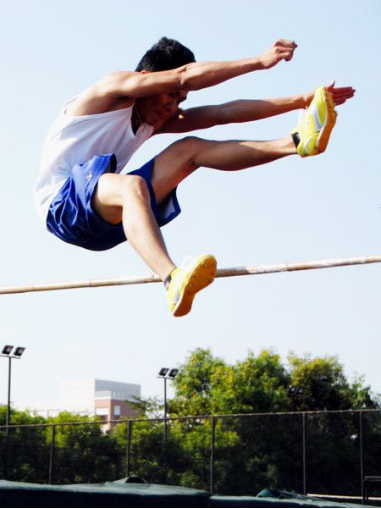 十月十五日下午,法学院跳高健儿在灿烂的阳光下争夺“最高”荣誉。在男子跳高项目中,来自10外交的周建烨如威猛的雄鹰,跨出的脚步踩在云层,最终以1.65m的优异成绩夺得冠军。来自10法一与来自10法六的黄志鹏获得并列第二。