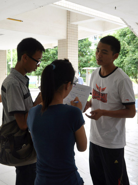 李:除了家人的支持,我最想感激的就是学校的带队老师和领导了。学校对参赛选手都十分看重,对我们的关怀无微不至,衣食住行面面俱到。参赛时,我们“住”在友苑,那里环境优越;“食”在博雅,一日三餐免费,每餐8元的点餐标准,还时常分派牛奶、红牛等饮料;“穿着”方面,学校会统一发放服装;“行”有教练专车接送。在训练期间,领导们还会经常到集训场慰问我们。这次我能取得不错的成绩,学校老师和领导的关怀与帮助功不可少啊。