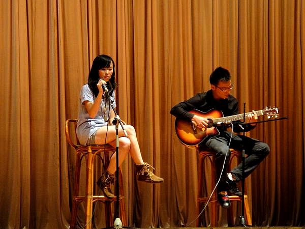 “秋之声”比赛开始前,法学院艺术团模特队的开场表演带来了一场视觉的盛宴。紧接其后的是1号组合,来自09级的淳子和郭曼若,以吉他伴奏女声清唱,清新的声音回旋在学生活动中心,舒缓了观众看完模特表演后的激动心情。而10号刘涵仪的一首《天路》则再次把现场观众热情点燃,她媲美原唱的高超歌唱技巧令所有人惊讶,那原生态的超高音让全场沸腾与尖叫,仿佛带着观众们走向了那神秘的异域,也将现场的气氛推向了高潮。11号的伍嘉盈和12号的王启慧深情演唱,也尽显了个人独特魅力。