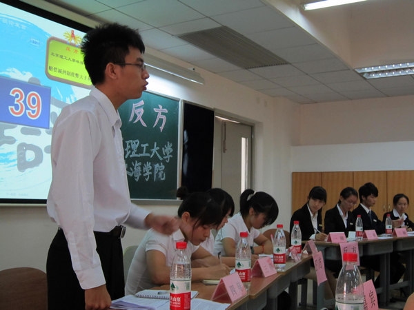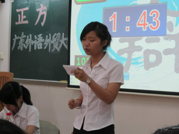 本网讯(文字 摄影:杜颖思) 4月24日下午,“众合教育杯”广东省高校辩论联赛小组赛A组第三场比赛在G206举行。本次比赛的评委由来自华工、广工、广大、中大和广商等五所高校的学生代表担任。