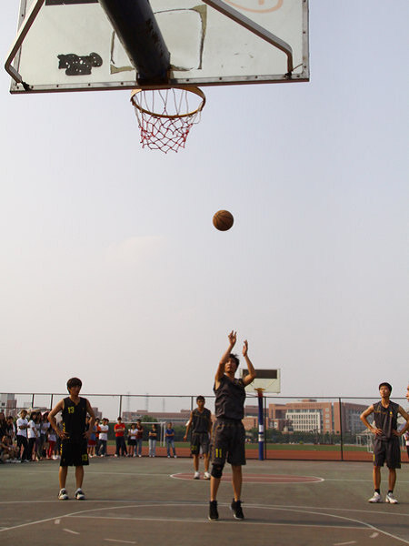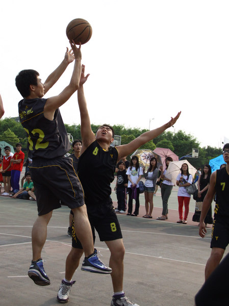 本网讯:(文字:谭元轲 摄影:李怡忆 江家和) 4月21日下午,广外篮球场上,我院男子篮球队迎来了南校区半决赛的对手财经学院男篮,尽管以33比36三分之差憾负财经男篮,但我院男篮力拼到底,打出了法学院的精神面貌,可谓虽败犹荣。