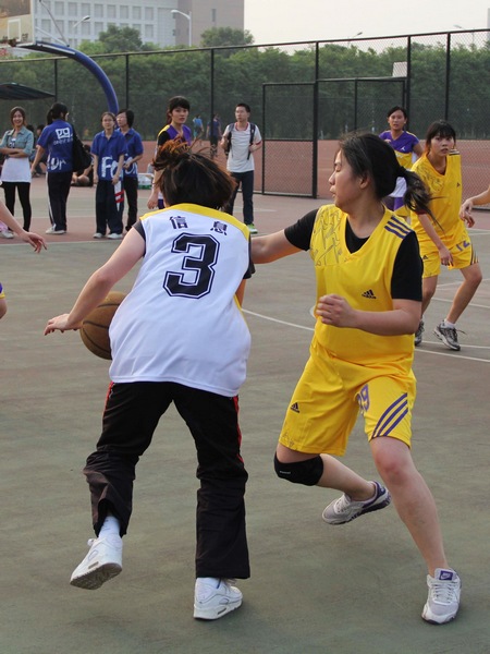 四点四十五分,我院女篮与信息学院的比赛开始。在第一节的比赛中,我方队员利用速度屡屡突破得分,同时给外线创造了空档,内外开花,取得了8比2的领先。第二节,对方在防守上作出调整,加强了内线的防守,给我方队员的突破制造麻烦,一直没能轻松得分。同时对方还将进攻点改在了外线,利用挡拆取得空档接连命中一个两分和一个三分,将比分扳回7比8。在第二节的最后阶段,我方凭借快攻取得两分,带着10比7的领先优势进入下半场。