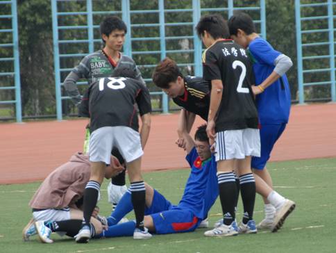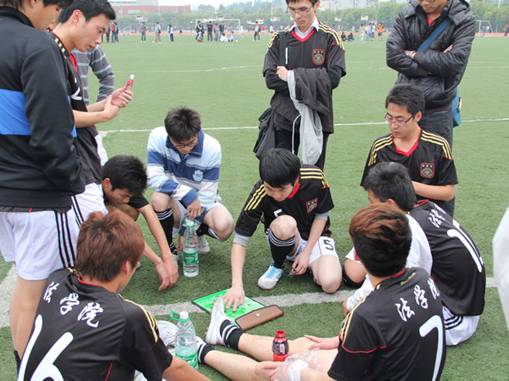 在周五与经贸学院的比赛是决定我院是否能取得出线的“生死战”,队员拼劲更足。经贸学院在小组比赛中保持着不败的战绩,让队员们感到压力的同时也获得动力。上半场比赛中,我方队员们在不断向对方球门发起猛攻的同时兼顾着后场的严密防守,没有给对方太多进攻机会。经贸学院也踢得非常谨慎,其防守没有给我方太多轻松起脚的机会,双方带着0比0的比分进入下半场。