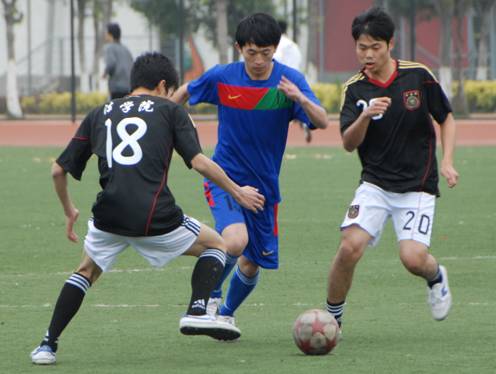 本网讯(文字:邓冠杰 摄影:江家和) 24日与25日下午,我院足球队迎战本届“广外杯”小组赛的两个劲敌:信息学院和经贸学院,分别以0比1、1比2惜败,未能挺进八强。