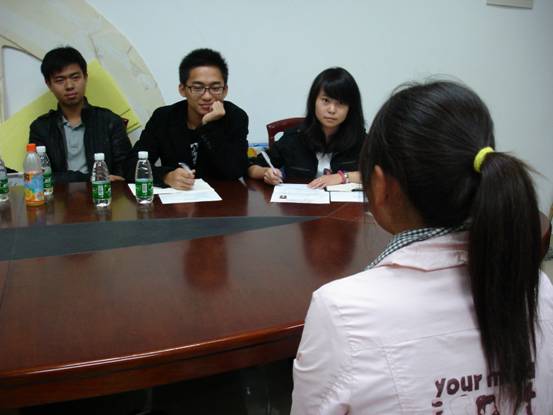 担任本次面试官的分别是团委副书记高可闻、学生会秘书长金聪和校友联络部部长张宇飞。据张宇飞介绍,部门将建立校友网络并组织校友交流及相关活动,为法学院校友提供一个广阔的交流平台。因为该部门较为注重的是沟通交流能力,所以面试的问题充分体现了该部门的特色,并对应试者进行了综合考量,包括处事能力、应变能力等。