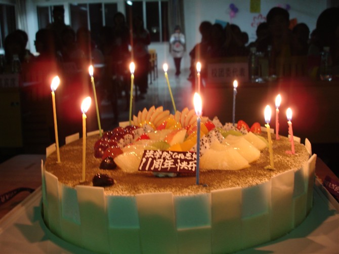 19:00晚会正式开始,各种表演接踵而来。先是广工和华师手语队用其别有深意的表演拉开庆典帷幕,随后广外魔术协会充满惊喜和新意的魔术将现场气氛迅速点燃。精彩难忘的视觉享受之后,在愉快的音乐声中,所有嘉宾将他们对Care志协的祝福写在心形卡片上并挂上许愿树,一棵在祝福浇灌下的树渐渐“茁壮成长”。紧接着,重头戏到来。工作人员推出了志协的生日蛋糕,11根蜡烛见证了Care志协的诞生和成长,曳曳烛光让人感受到了温暖和喜悦。