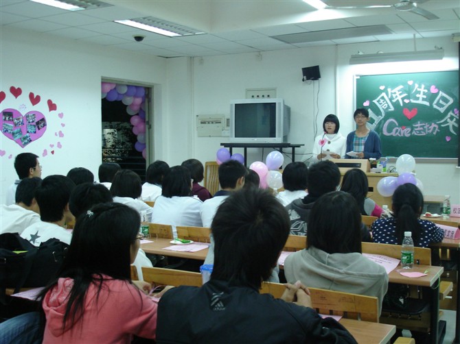本网讯(文:龙碧 摄影:李怡忆) 2010年11月19日19:00,广东外语外贸大学法学院Care志协在教学楼E203举办了11周年生日会。法学院团委副书记高可闻、团委学生会副主席郭超鸿、09级2班党支部书记黎善文、08届志协副会长姜虹、现任会长李智敏和副会长冯嘉瑜以及广工向日葵青年青年志愿者协会代表、广中医歧黄科普会代表、华师大物理与电信工程学院志愿者协会代表等作为嘉宾出席了该次庆典。