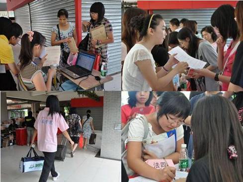 今年的新生报到,法学院共派出136名工作人员,并分设总站、分站和机动组三个大队,各队间则协调合作。“首先将新生带到11栋楼下大本营处报到,再领到宿舍楼下,由机动组成员将行李搬上楼。尽量将每一个环节做细做好。”负责人高可闻称,“这种一对一的领路形式,可以很好地确保行李等各方面的安全。”而这些细节上的留意给新生们留下深刻的印象。团委学生会当晚即进行了新生慰问,新生对师兄师姐的关心和热情深受感动。