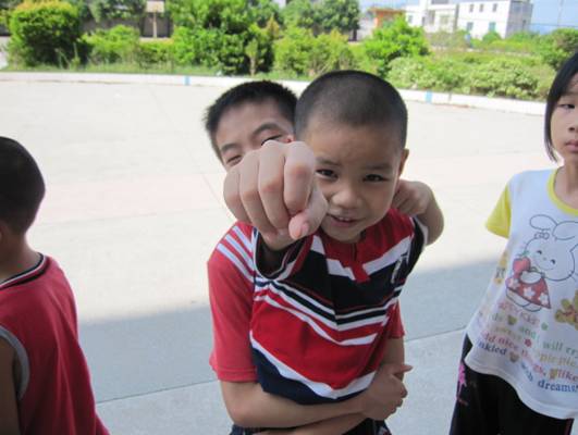 老师宣布游园会正式开始后,孩子按捺不住激动的心情,从教室中鱼贯而出,冲向自己喜爱的游戏项目。扣人心弦的打保龄球比赛,使孩子们排成长龙。没有保龄球,矿泉水瓶来凑,篮球飞滚,声音利爽,孩子们的加油声,欢呼声,喝彩声,一声更比一声高。另一边,“跳房子”则由女孩子来称霸。娇小的女孩子们,有着灵巧的身躯和惊人的爆发力,在粉笔筑成的房子上,用飞舞的身姿展现独特地风采。教室中,欢笑声一点也不比操场的低。音乐迷人,眼神犀利,是抢凳子进行时;水花飞溅,笑脸飞扬,是吹乒乓球游戏在上演,清凉与热情并存,力量与技术同在,小小的乒乓球在水杯中飞了起来。孩子们和老师们的心也在游戏中飞了起来。