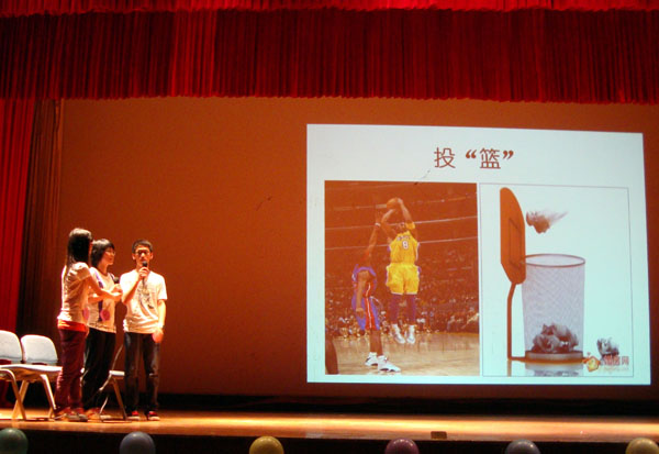 本次比赛分为两种形式,一种是港式娱乐节目“百万富翁”式的游戏问答,另一种是“看图说话”即“即兴演讲”。