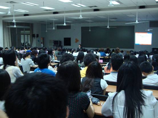 本网讯 毕业就等于失业吗?大学生应如何尽早做好自己的职业规划?2010年4月20日晚上,广州海创教育信息咨询有限公司副总经理、首席讲师郭丹锐为广外法学院学子一一拨开迷雾。