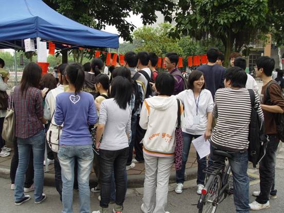 在校道上,志愿者们分派传单与小册子,以短小精悍的篇幅介绍《消费法》的主要法条及维权途径。分派传单的工作人员,不厌其烦地向过往行人宣传维权知识,并引导他们走去咨询点。为了更好地吸引同学们来参加本次活动,现场热情的工作人员各出奇招,有的工作人员甚至把正在骑车的同学拦下来,在确保安全的前提下进行宣传,这样的举动也令在场的同学忍俊不禁。