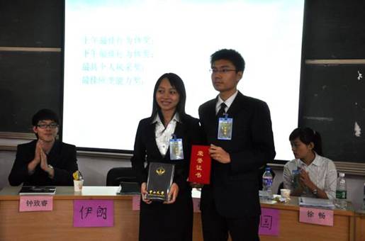 论坛的最后是颁奖环节。代表智利的王智鑫、郑瑜获得了第一场讨论的“最佳行为体奖”,而王智鑫一并获得了本届论坛的“最佳个人风采奖”。 “最佳应变能力奖”、第二场讨论的“最佳行为体奖”则由中大的刘爽同学以及扮演“联合国环境署”的中大代表获得。在接受颁奖时,王智鑫表达了对所学专业的热爱之情,他认为外交学、国际关系学是非常重要的学科,值得去热爱和投入。