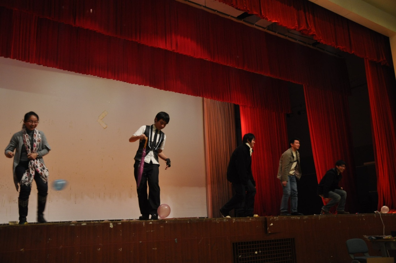 大会的重头戏是各部门的T台秀。各部干事依次走上舞台,然后摆出各种搞怪雷人的POSE,表演精彩之处,还引来各位团学同僚阵阵掌声、笑声以及喝彩声。外联部走秀的时候更是引发全场爆笑,频频有团学干事大呼:“受不了!”、“雷倒了!”