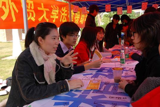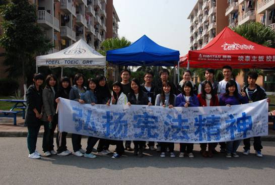 本网讯 12月4日是全国法制宣传日,为了弘扬宪法精神,宣传法律知识,增强大学生的法律意识,由法学院团委学生会和法律援助中心主办的普法宣传系列活动于当日中午在校道如火如荼地进行。法学院的法学专业研究生和通过司法考试的大四学生到场接受了同学们的法律咨询。