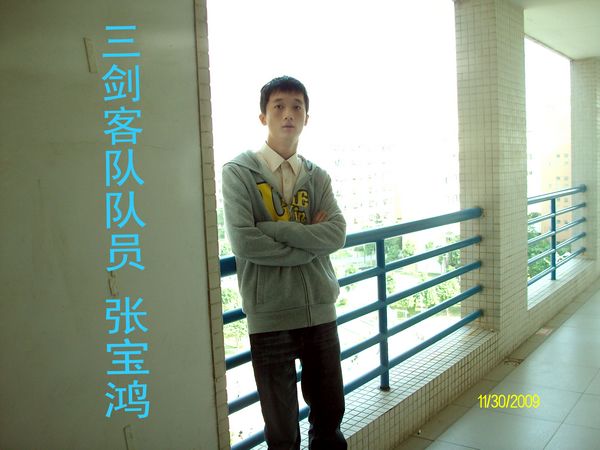 个人简介:张宝鸿,三剑客队队员。作为一名法学院的学生,我有着一颗对法学热爱的心,一种对社会法治的憧憬,一份无法推卸的社会责任,这同时也激励了我,激励着自己向自己的目标前进,用所学的专业知识回报社会,为祖国的法制事业献出自己应有的一份力量。所以我严格要求自己,努力学好专业知识,尽量多地阅读各种专业期刊,提高自己的专业素养以及锻炼自己法学思维。我相信今天种种付出已让我离自己的理想更加接近。