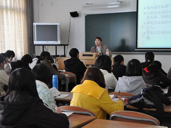 本网讯 11月17日下午2点,校党委宣传部副部长李江对我院新闻资讯部学生进行了系统的培训。院团委书记郭嫄,团学主席团以及新闻资讯部的所有成员济济一堂,会上,李江就我院网站建设和新闻写作规范展开了生动具体的讲解。
