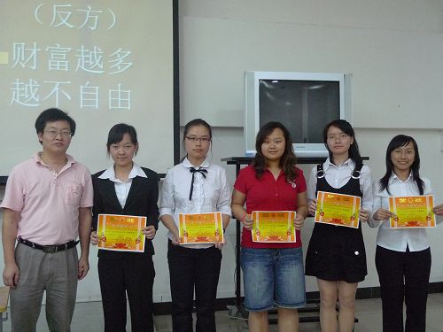 优秀辩手:胡俊珺、蒋竹薇、陈嘉敏,欧阳军丽、王新鹏