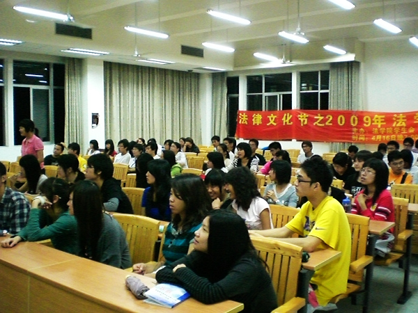 4月16日晚,法律文化节之2009年法学院辩论赛在教学区F107隆重开赛。本次比赛的评委由07级法学院辩论队队长汪敏,队员黄立桁、徐永鹏和严小茹担任评委。