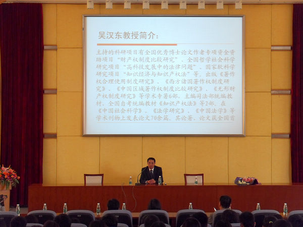 4月9日下午,围绕上述问题,中南财经政法大学校长、博士生导师吴汉东教授在我校南校区八角楼,为同学们带来了题为“创新型国家与知识产权战略”的讲座。